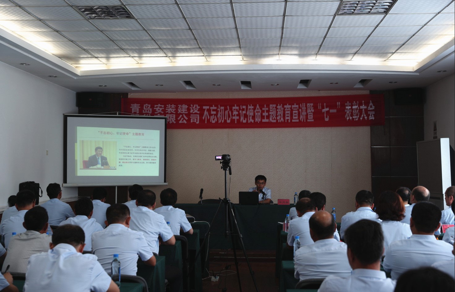 青島安裝建設股份有限公司“不忘初心、牢記使命”主題教育宣講暨“七一”表彰大會在雄壯的《國際歌》聲中結束。