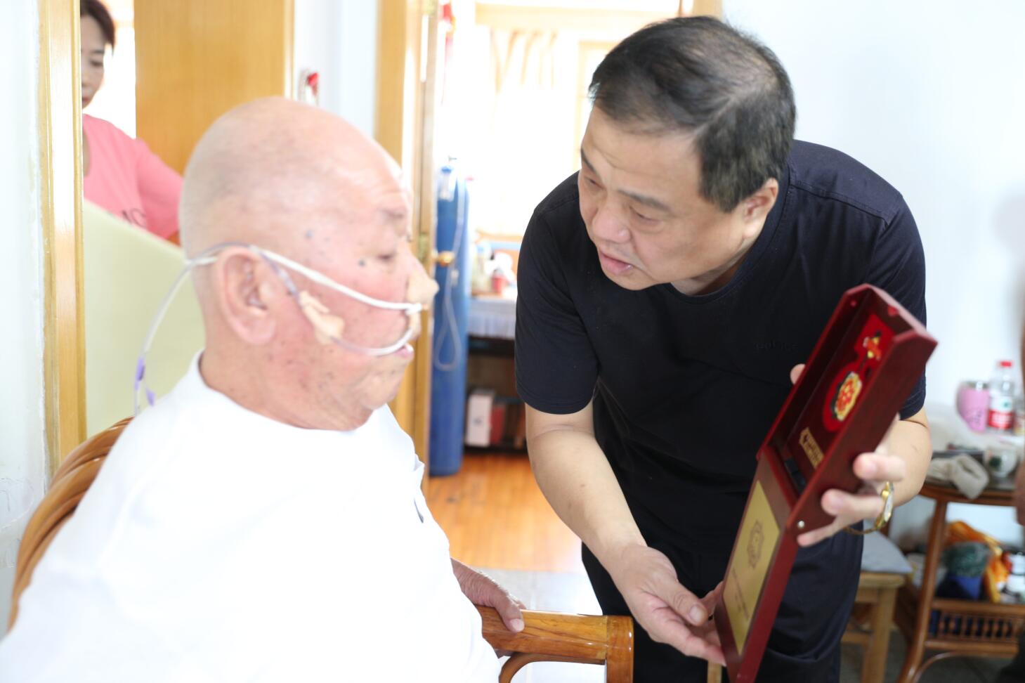 9月23日上午,青島安裝建設(shè)股份有限公司紀(jì)委書(shū)記、工會(huì)主席李金通與相關(guān)同志帶著上級(jí)領(lǐng)導(dǎo)部門(mén)和公司領(lǐng)導(dǎo)的重托,將這枚閃耀著光輝象征與最高榮譽(yù)的獎(jiǎng)?wù)滤偷搅艘?jiàn)證共和國(guó)誕生和發(fā)展奇跡并為之做出突出貢獻(xiàn)的全國(guó)勞模賀再奎及家人手中。感謝他為祖國(guó)和人民的無(wú)私奉獻(xiàn),更感謝他為青島安裝公司帶來(lái)的無(wú)尚榮耀。